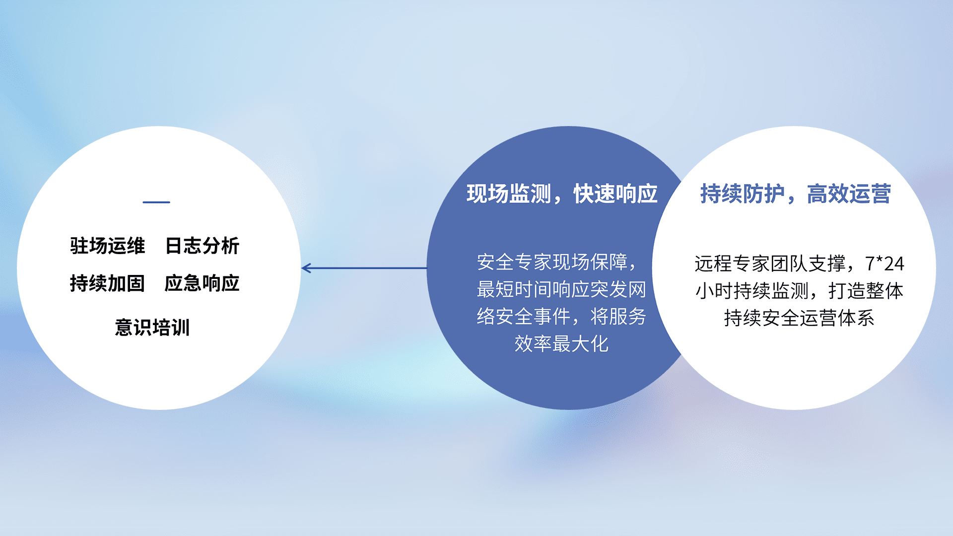 针对客户行业特性,,,提供专属的一站式安全管理服务,,,,帮助客户全面感知网络空间威胁,,通过安全专家的线上、、、线下防护支持,,,,实现风险闭环,,,将安全保障常态化,,,为客户打造常态化安全运维运营服务。。