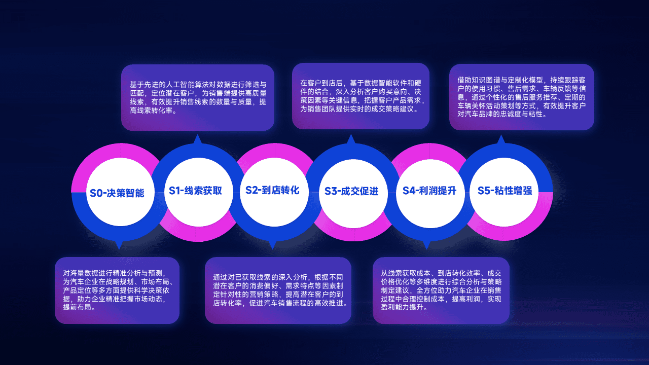 通过拓宽潜在客户来源、、、、优化线索分配并提高到店转化率,,,以增强销售效率。。。同时,,利用线索数据不断优化分析模型,,,有效提升转化率,,扩大营销影响力。。。